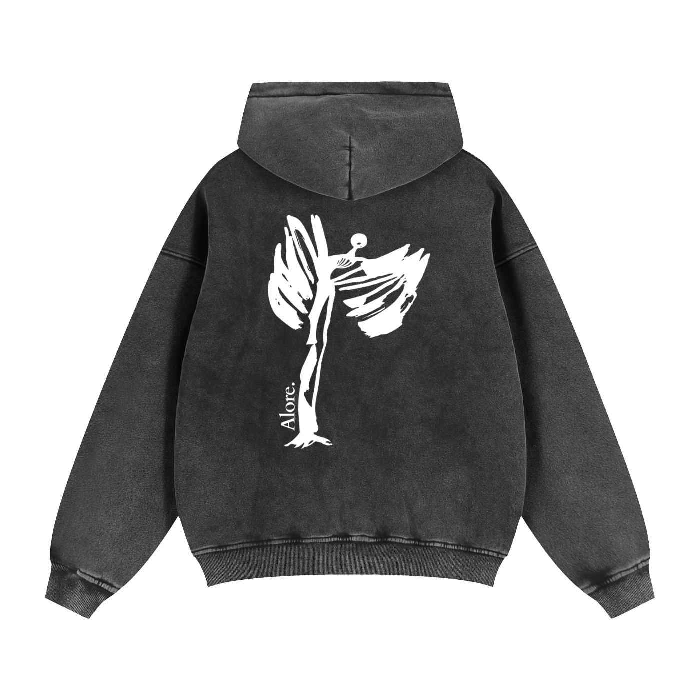 Grey Washed 'Angel' Zip-Through Hoodie - Oversized